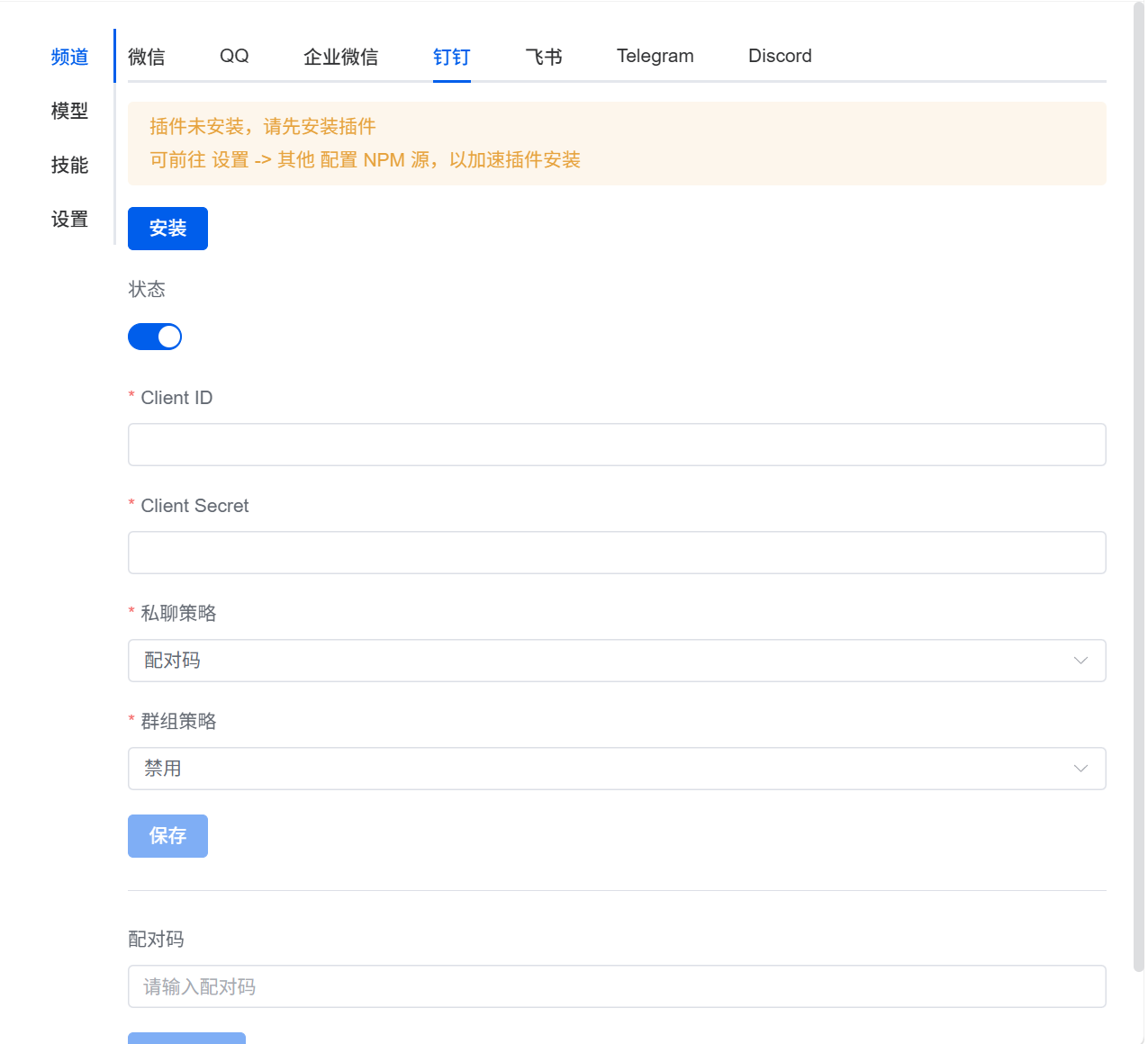 3.保存好配置的NPM源,回到之前的页面安装钉钉插件