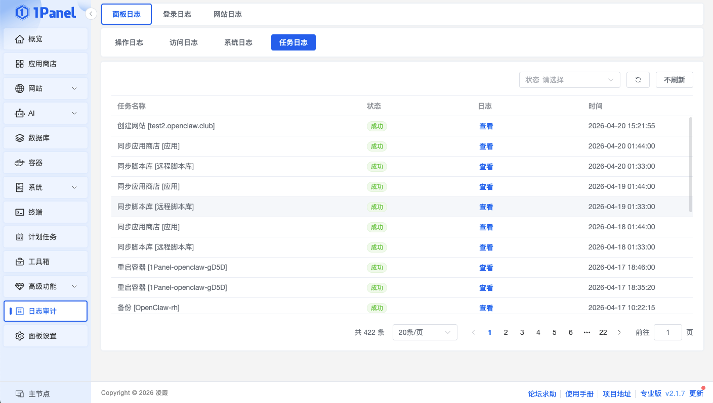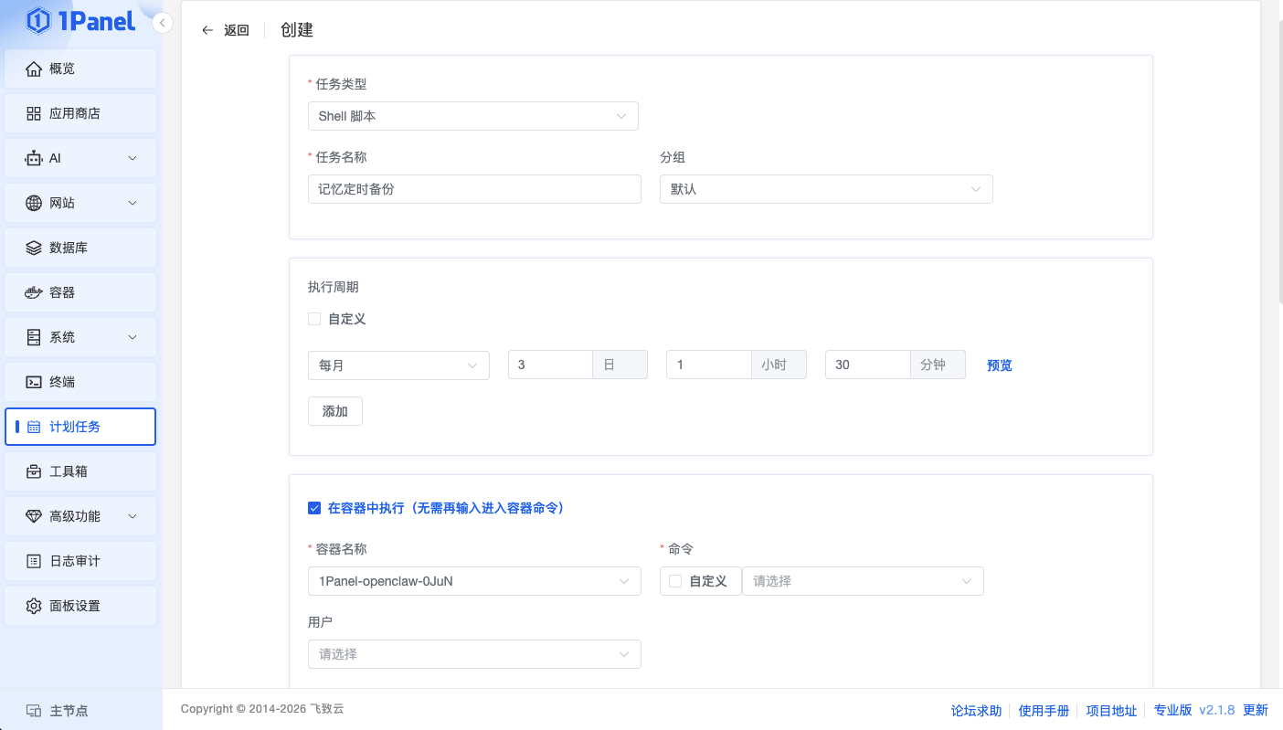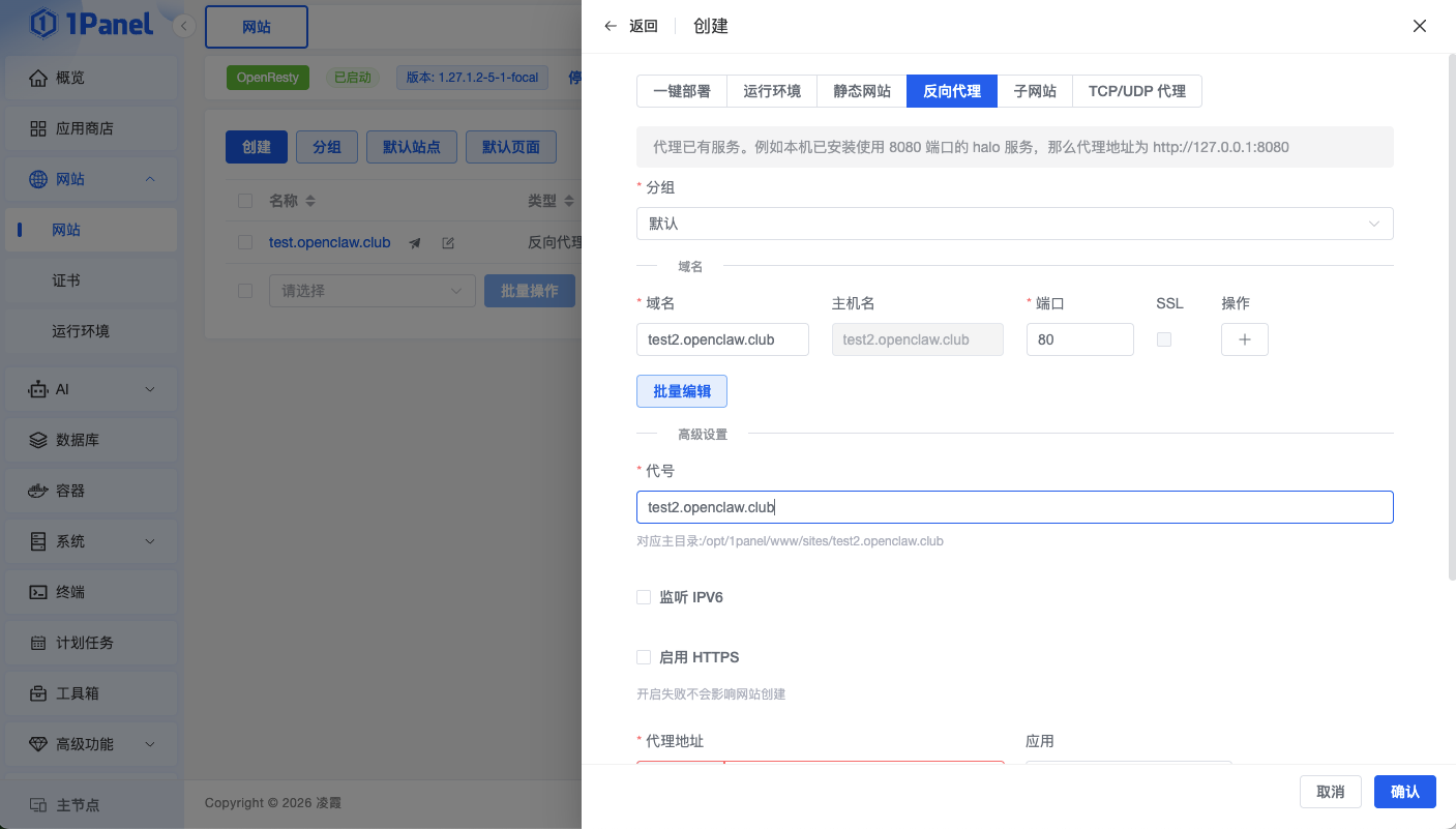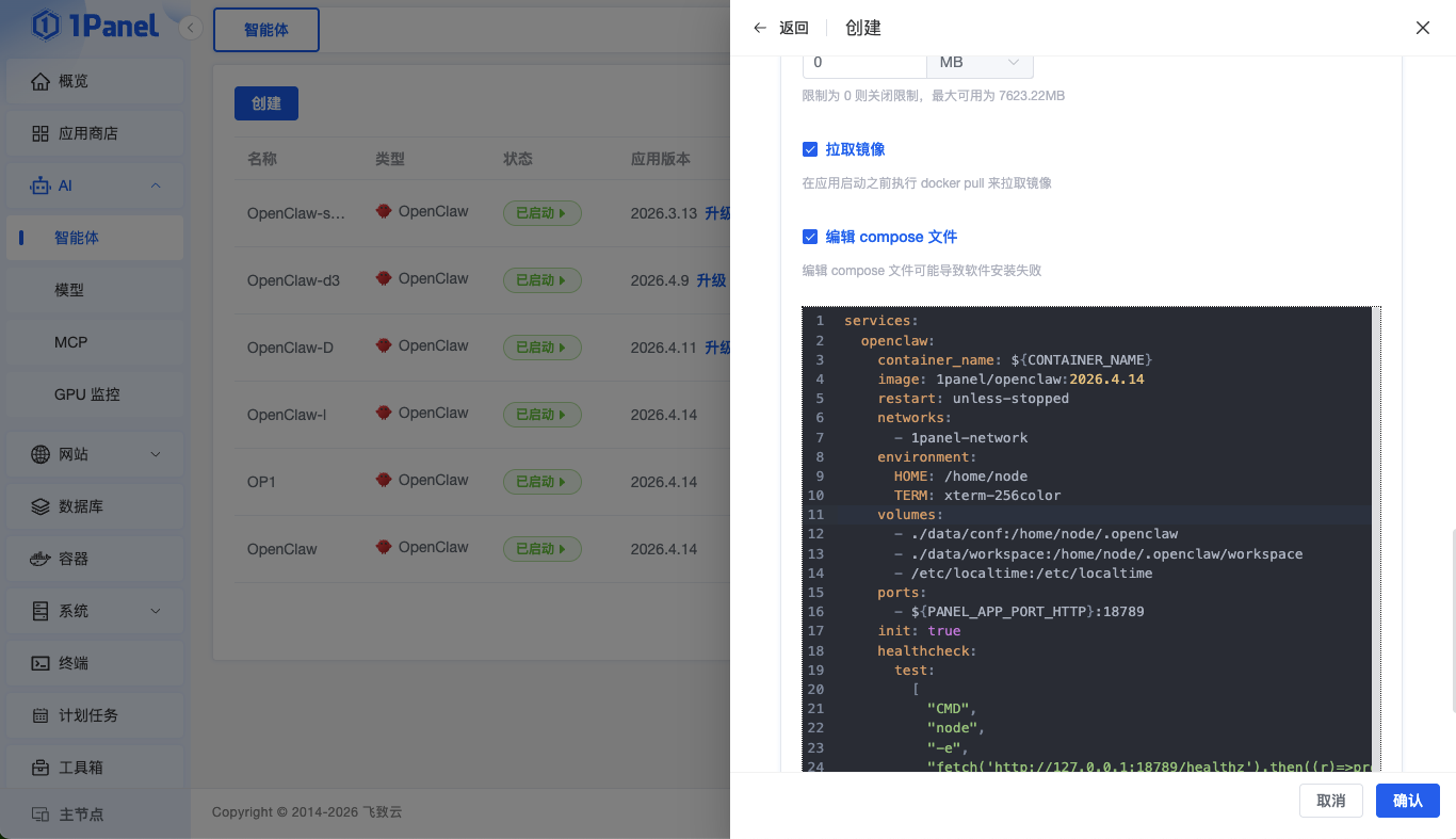 适用版本:OpenClaw 2026.4.15+ | 1Panel v2+