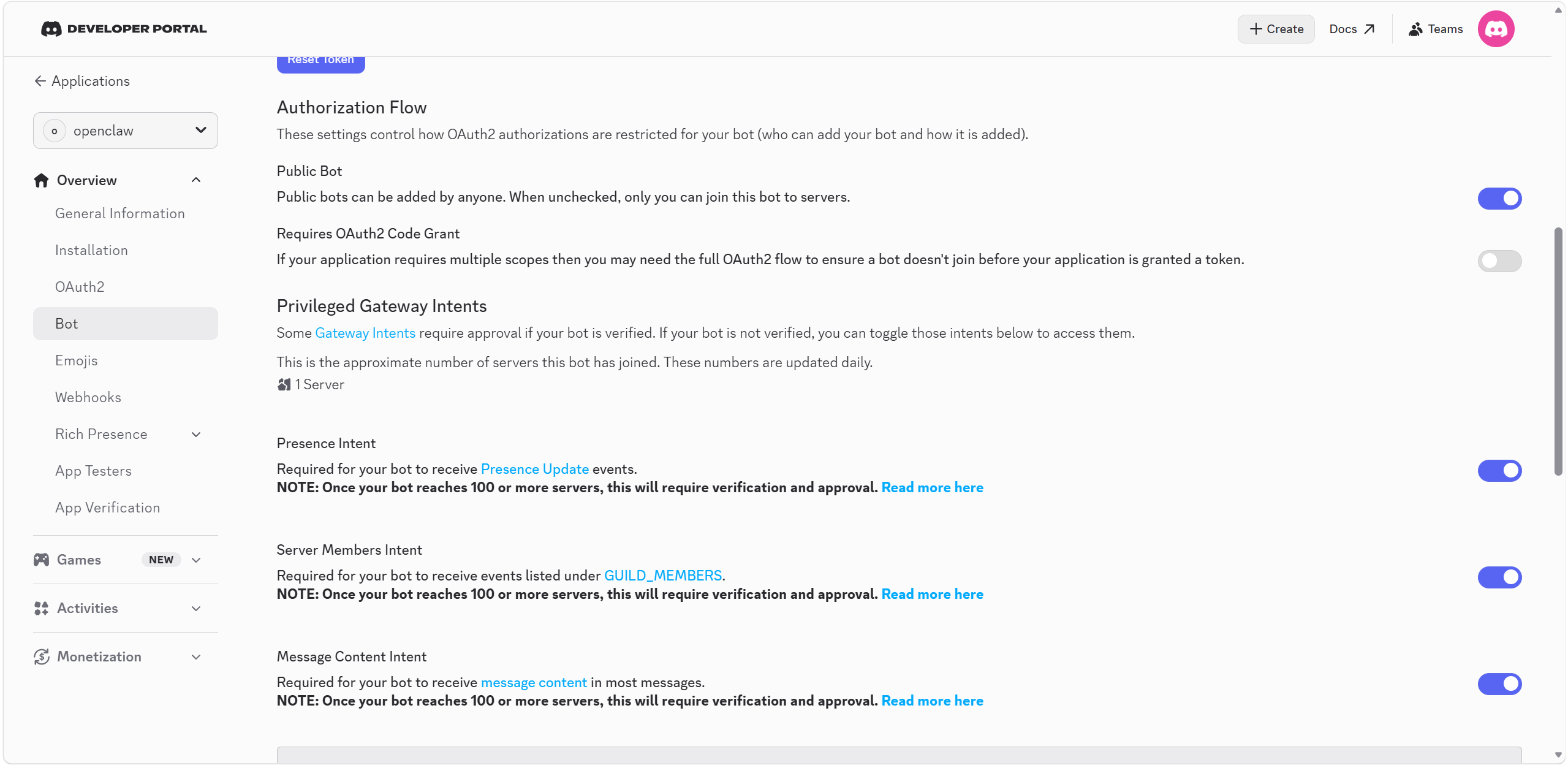 Message Content Intent