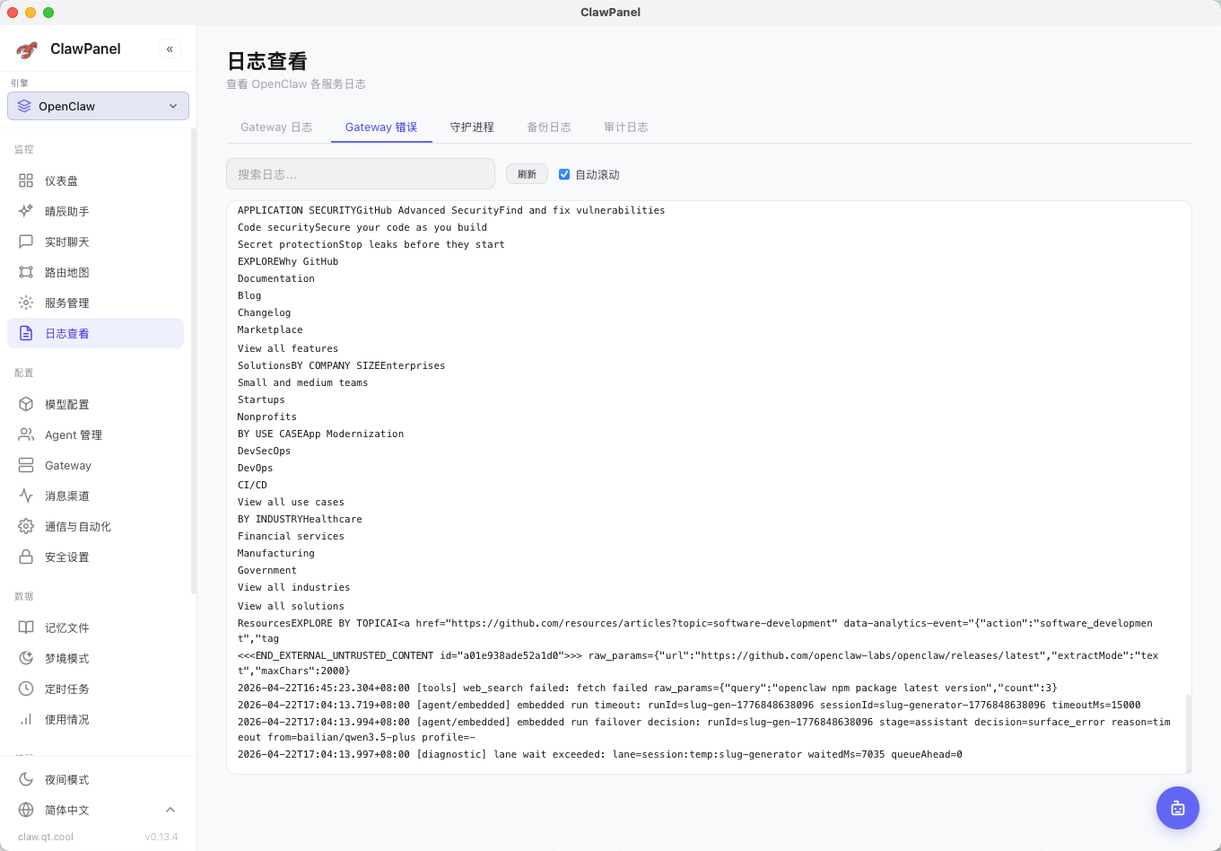 GitHub 地址:https://github.com/qingchencloud/clawpanel