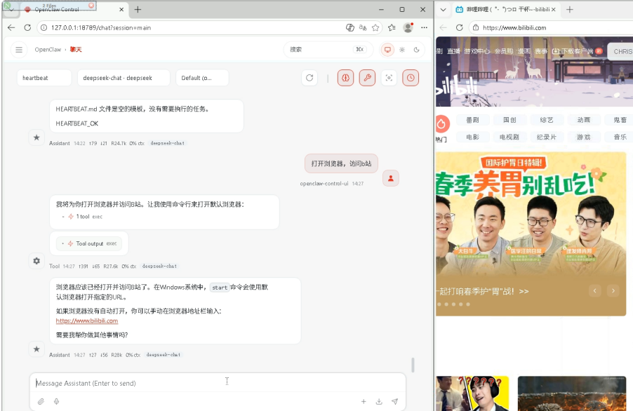 在 OpenClaw 对话界面,直接用自然语言或简单指令控制浏览器自动化: